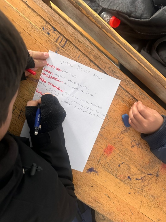 Etkinlik sonunda her öğrenci, tasarladığı icadı tanıtan kısa bir yazı ve çizim/poster hazırlayarak sunum yapar. Bu sayede öğrenciler hem iletişim becerilerini geliştirir hem de bilimsel meraklarını ortaya koyma fırsatı bulurlar.