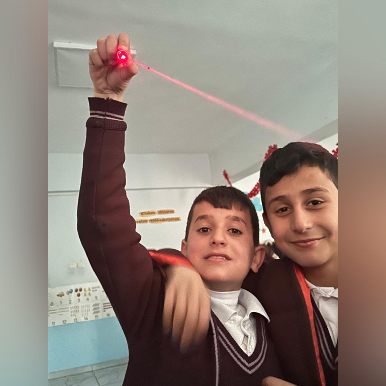 HEGİP kapsamında “Işığın Doğrusal Yayılması” konulu etkinlik yapıldı. Bu etkinlikte öğrenciler, ışığın boşlukta ve saydam ortamlarda doğrusal bir yol izleyerek yayıldığını deney ve gözlemlerle keşfederler. Günlük yaşamdan örneklerle desteklenen etkinlik sayesinde, öğrenciler ışığın hareketiyle ilgili temel bir fizik ilkesini eğlenceli ve kalıcı bir şekilde öğrenirler.
